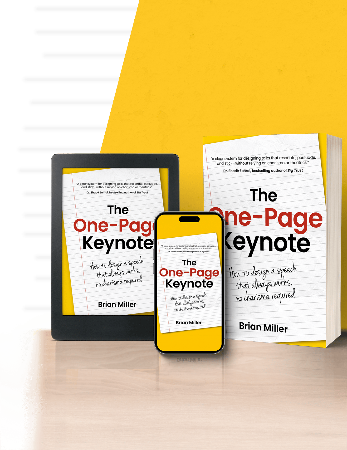 The One-Page Keynote is the missing framework that turns what you know into a winning speech that lands every time, whatever the topic.